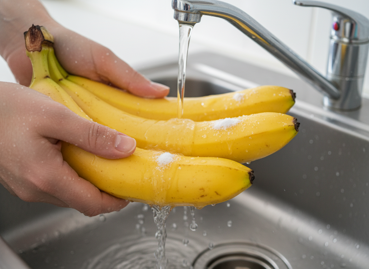 집에 오자마자 흐르는 물에 바나나를 3회 이상 꼼꼼히 씻어주세요. 이때 베이킹소다를 푼 물에 잠시 담갔다가 헹궈내면 잔류 농약과 함께 불청객들을 말끔히 씻어낼 수 있습니다. 마치 우리가 외출 후 손을 씻는 것처럼, 바나나도 '입주 신고식'을 치러야 합니다. 물기는 키친타월로 완벽하게 제거해 주세요. 수분은 부패를 가속화하는 원인이 되므로 뽀송뽀송하게 닦아주는 것이 핵심입니다. 이 과정만 거쳐도 주방을 배회하는 날벌레의 90%는 줄일 수 있습니다.