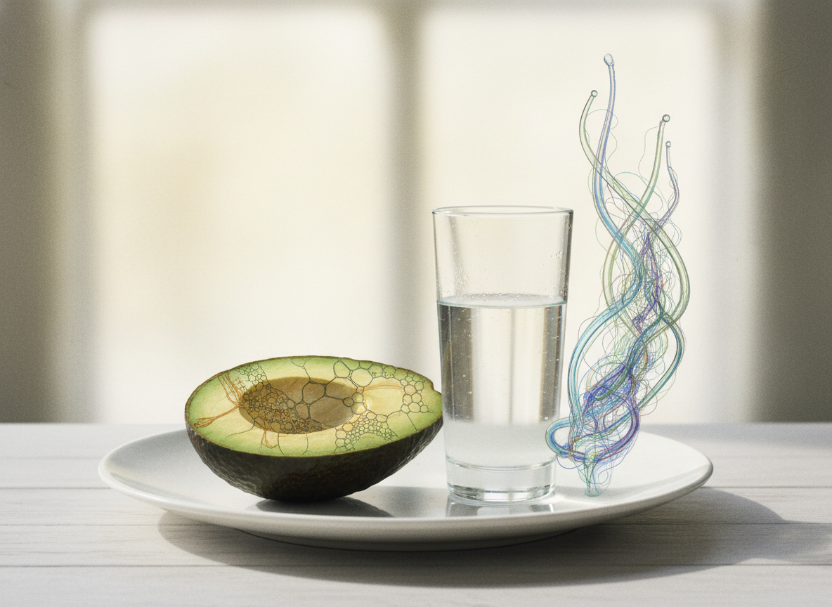 아보카도가 '숲속의 버터'라고 불리는 이유는 지방 함량이 높기 때문이에요. 하지만 걱정하지 마세요! 이 지방의 대부분은 우리 몸에 유익한 단일불포화 지방산(올레산)으로, 나쁜 콜레스테롤 수치를 낮추는 데 도움을 줍니다.