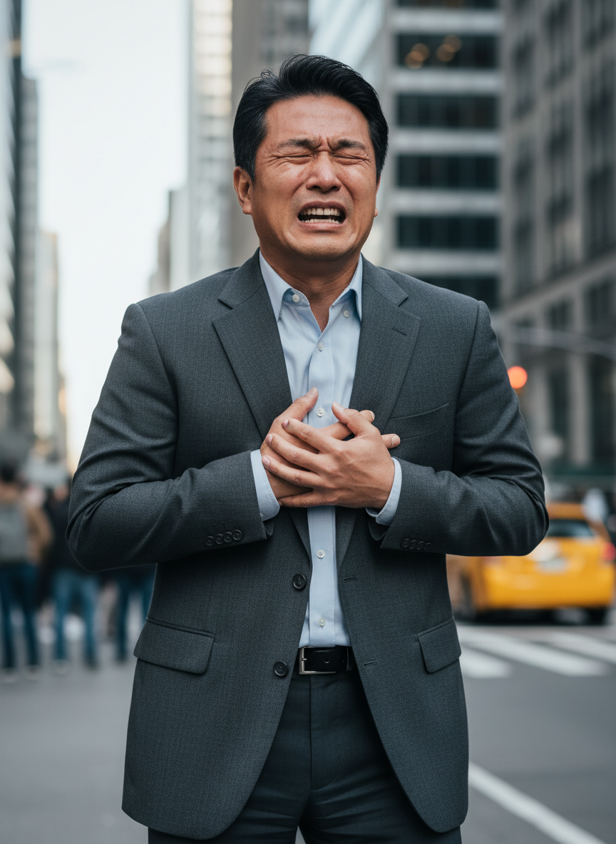 만약 극심한 가슴 통증이 안정을 취해도 15분~20분 이상 지속되고, 식은땀, 호흡 곤란, 극심한 어지럼증이나 구토가 동반된다면 '급성 심근경색'일 가능성이 높습니다. 이때는 지체하지 말고 즉시 응급실로 가셔야 골든타임을 지킬 수 있습니다.