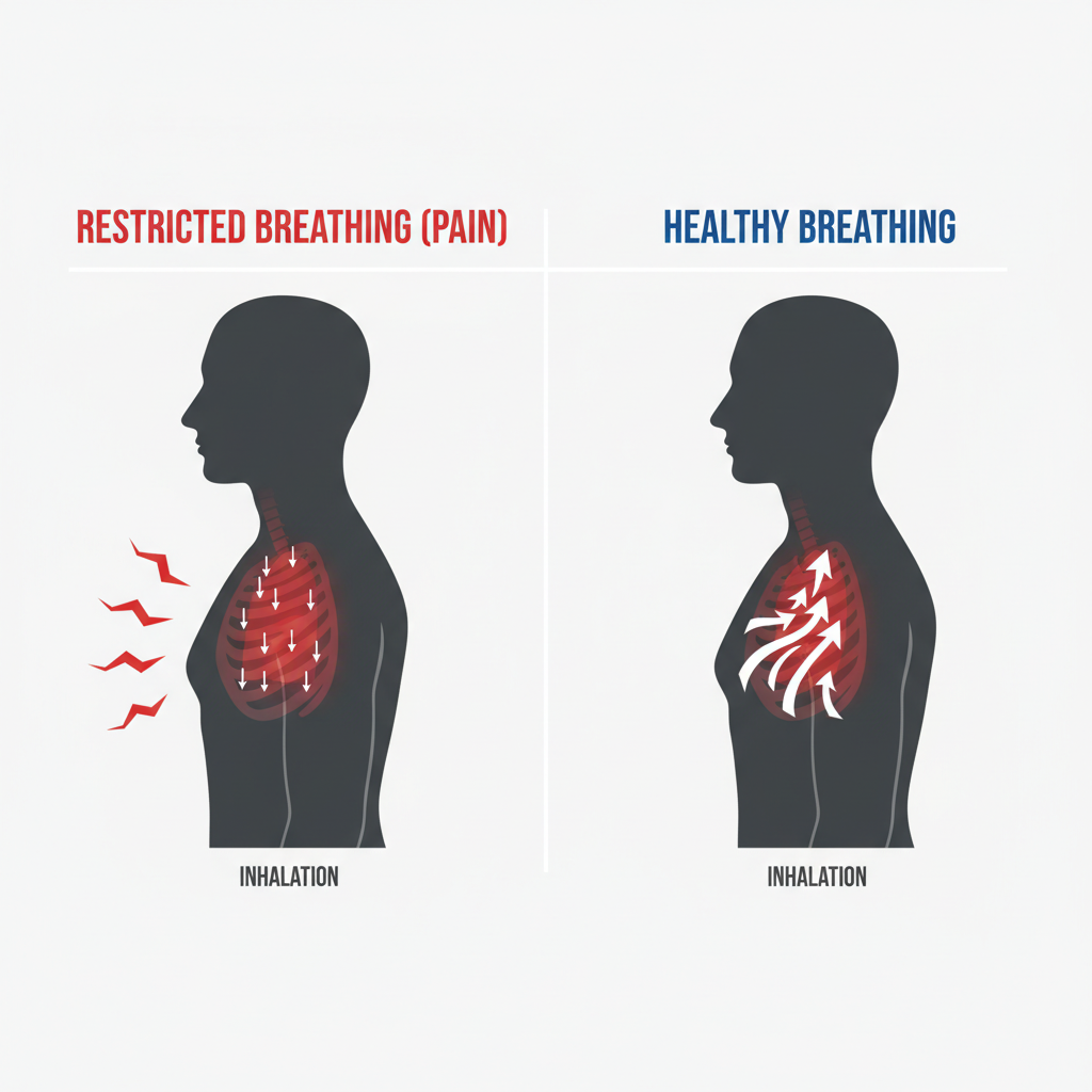 - 호흡 곤란: 통증 때문에 숨을 충분히 들이쉬지 못해 얕은 숨을 쉬게 되고, 심하면 호흡 곤란을 느낄 수도 있습니다.