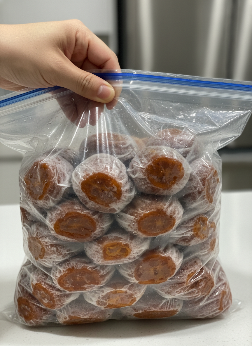 냉동실에 넣는다고 해서 모든 게 해결되는 것은 아닙니다. 곶감을 박스째 그대로 냉동실에 밀어 넣는 행위는 곶감을 '냉동실 탈취제'로 쓰는 것과 다름없습니다. 곶감의 과육은 냄새를 흡수하는 성질이 매우 강합니다. 생선 비린내나 마늘 냄새가 밴 곶감을 상상해 보십시오. 끔찍하지 않으신가요?