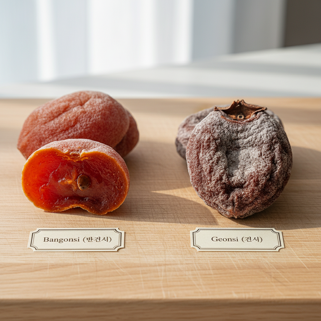 모든 곶감이 다 똑같다고 생각하시면 오산입니다. 우리가 흔히 접하는 곶감은 수분 함량에 따라 크게 두 가지로 나뉩니다. 겉은 쫄깃하지만 속은 홍시처럼 촉촉한 '반건시'와, 전체적으로 단단하고 쫄깃하게 말린 '건시'가 그것입니다. 이 차이를 이해하는 것이 보관의 첫 단추입니다.