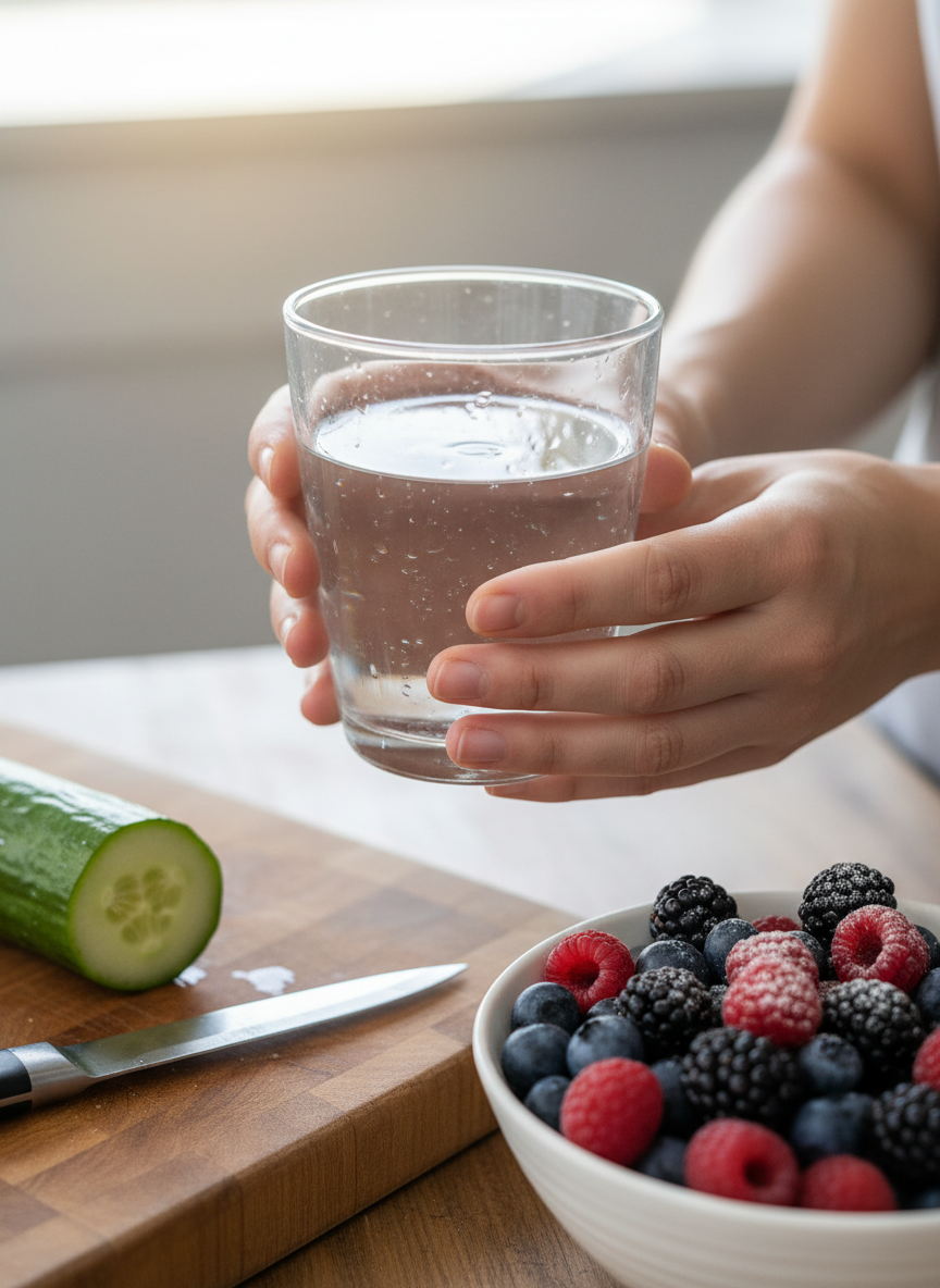 - 하루 1.5리터 이상의 충분한 수분 섭취