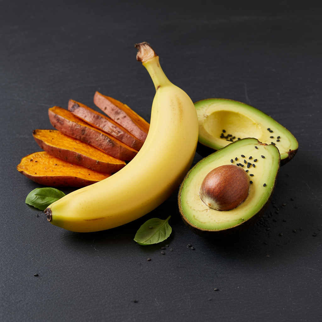 | 칼륨 | 나트륨 배출 및 수분 조절 | 감자, 고구마, 아보카도 |