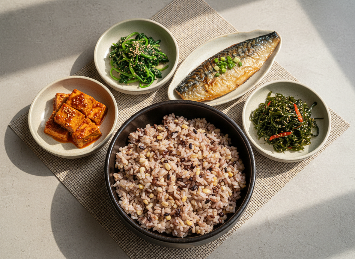 탄수화물을 줄인 자리는 단백질로 채워야 근육이 빠지지 않습니다. 콩과 두부는 식물성 단백질의 보고죠. 특히 밥을 지을 때 흰 쌀만 넣지 마시고, 콩이나 잡곡을 30% 이상 섞어보세요. 씹는 맛도 좋고 포만감도 오래가서 숟가락을 일찍 내려놓게 도와줍니다.