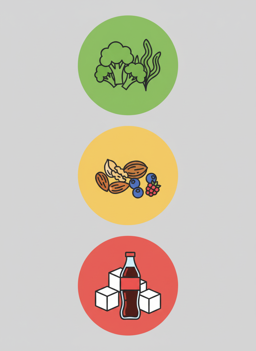 | 빨간불 (위험) | 설탕, 주스, 흰 빵/면 | 특별한 날에만 아주 조금 |