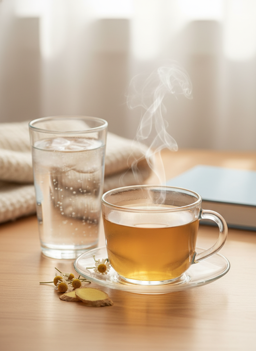 A: 커피의 카페인은 이뇨 작용을 촉진해 수분을 배출시키고, 숙면을 방해하여 면역력 회복을 더디게 할 수 있습니다. 급성기에는 커피 대신 따뜻한 물이나 카페인이 없는 허브차를 드시는 것이 회복에 훨씬 유리합니다.