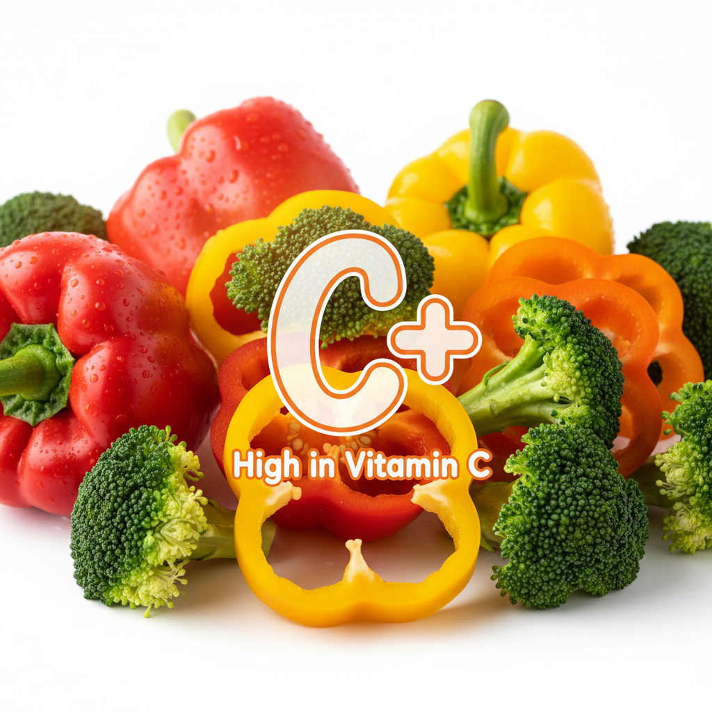 - 파프리카와 브로콜리: 비타민 C는 면역 세포인 백혈구의 기능을 강화하는 필수 영양소입니다. 특히 파프리카(주황, 노랑)와 브로콜리는 오렌지보다 비타민 C 함량이 높습니다. 활성산소를 제거해 염증이 퍼지는 것을 막아주는 방화벽 역할을 합니다.