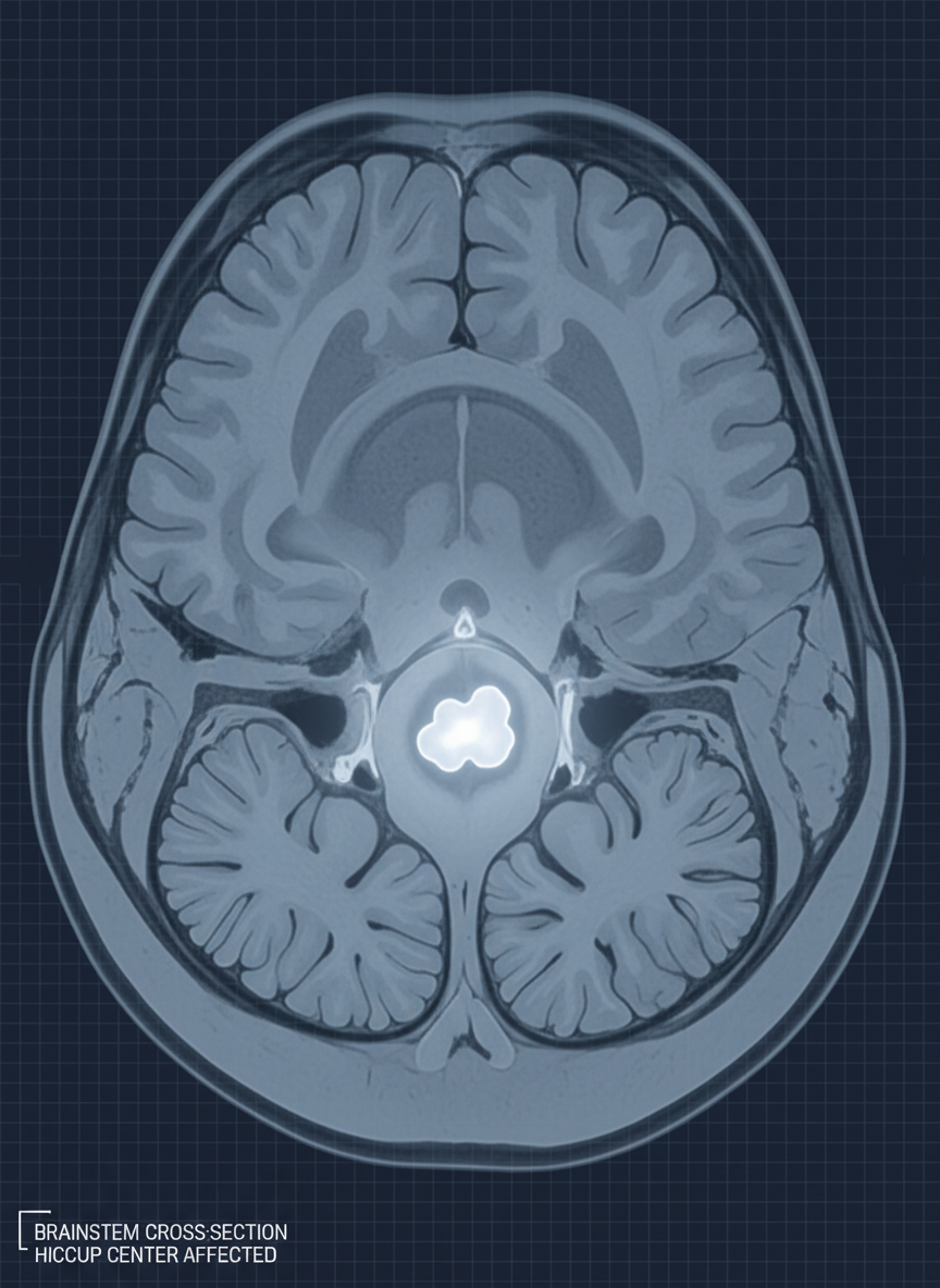 가장 심각하게 봐야 할 경우 중 하나인데요, 뇌간(brainstem) 부위의 뇌졸중, 뇌종양 같은 질환이 딸꾹질 중추를 자극해 발생하기도 합니다. 특히 어지럼증, 팔다리 마비, 시야 이상 등 신경학적 증상이 동반된다면 즉시 병원을 찾아야 합니다.