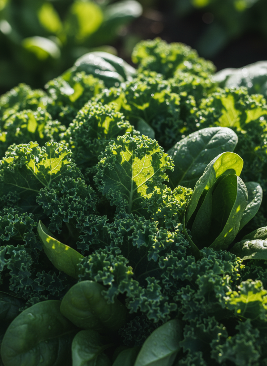 - 짙은 잎채소: 시금치, 케일 등 초록색 채소의 엽록소에는 마그네슘이 가득합니다.