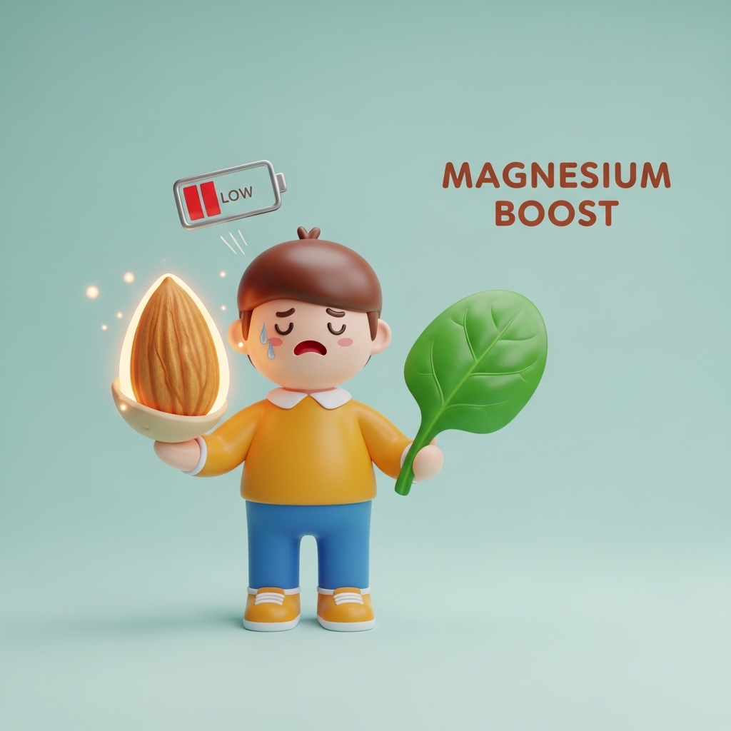 ③ 불면증과 불안감: 마그네슘은 신경계를 안정시키는 역할을 하므로, 부족 시 뇌가 흥분 상태를 유지하여 잠들기 어렵거나 공연히 불안한 마음이 들 수 있습니다.