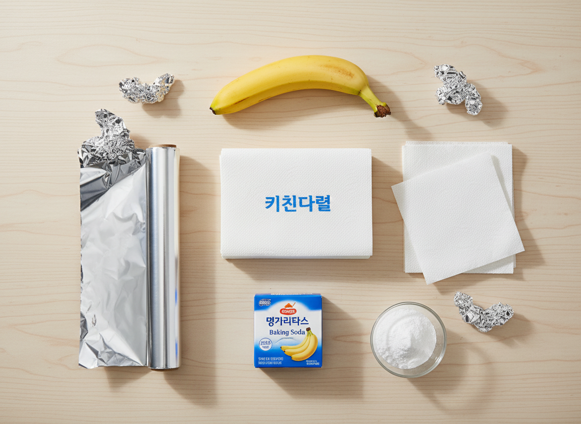 집에 오자마자 흐르는 물에 바나나를 3회 이상 꼼꼼히 씻어주세요. 이때 베이킹소다를 푼 물에 잠시 담갔다가 헹궈내면 잔류 농약과 함께 불청객들을 말끔히 씻어낼 수 있습니다. 마치 우리가 외출 후 손을 씻는 것처럼, 바나나도 '입주 신고식'을 치러야 합니다. 물기는 키친타월로 완벽하게 제거해 주세요. 수분은 부패를 가속화하는 원인이 되므로 뽀송뽀송하게 닦아주는 것이 핵심입니다. 이 과정만 거쳐도 주방을 배회하는 날벌레의 90%는 줄일 수 있습니다.