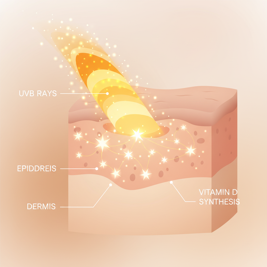 비타민D는 지용성 비타민으로, 햇빛의 자외선 B(UVB)가 피부에 닿을 때 콜레스테롤로부터 합성됩니다. 그래서 별명이 '햇빛 비타민'이에요!