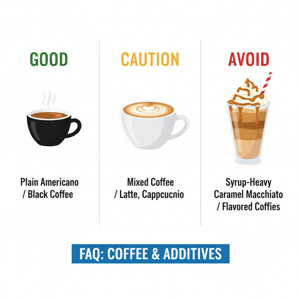 A: 하루 1~2잔의 적당한 아메리카노는 괜찮다는 연구가 많습니다. 하지만 믹스커피나 시럽이 듬뿍 들어간 커피는 인과 당분이 많아 피하는 것이 좋습니다. 또한 이뇨 작용으로 탈수가 올 수 있으니 물을 충분히 드셔야 합니다.