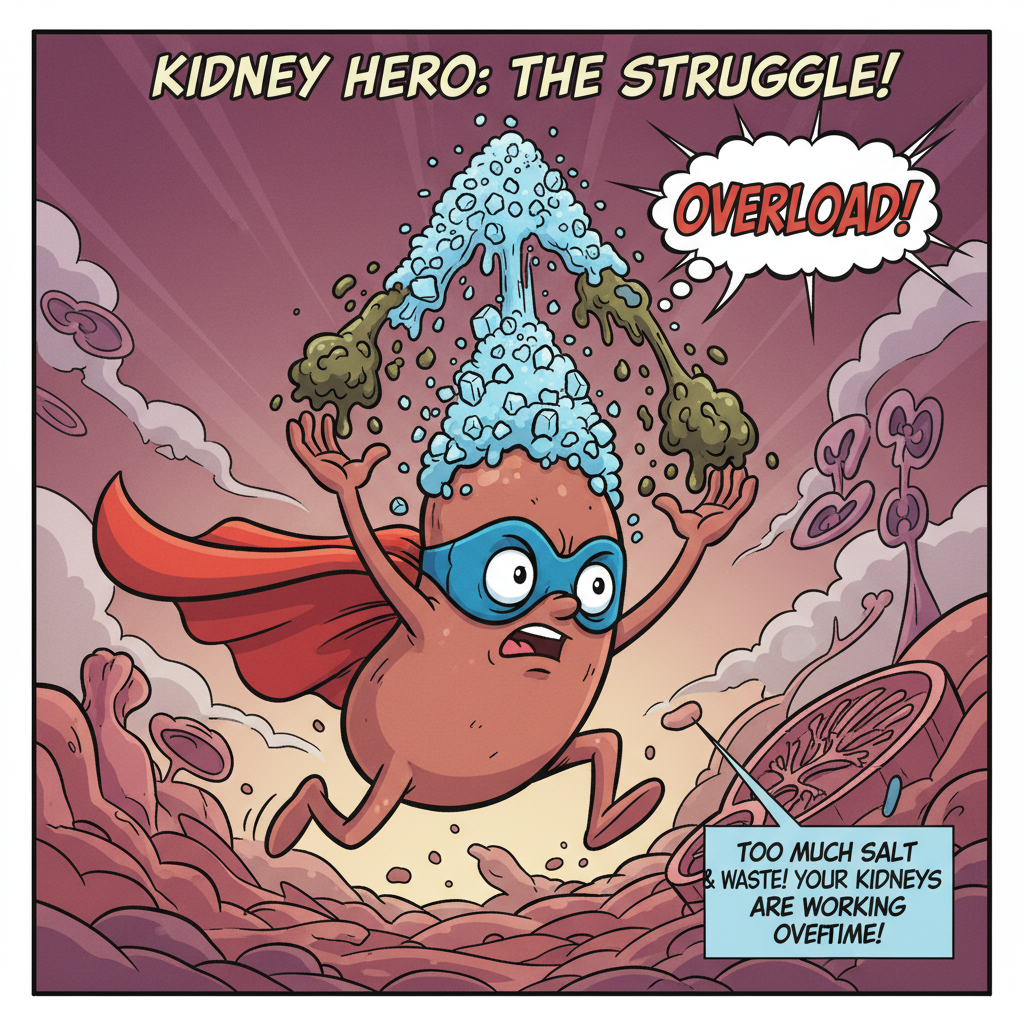 한국인의 소울 푸드인 김치찌개, 짬뽕, 설렁탕. 이 음식들의 공통점은 '국물'에 녹아있는 어마어마한 나트륨입니다. 국물을 들이켜는 행위는 소금물을 마시는 것과 다를 바가 없습니다. 혈압을 높여 사구체(신장의 필터 역할) 내 압력을 상승시키고, 결국 필터를 찢어지게 만듭니다.