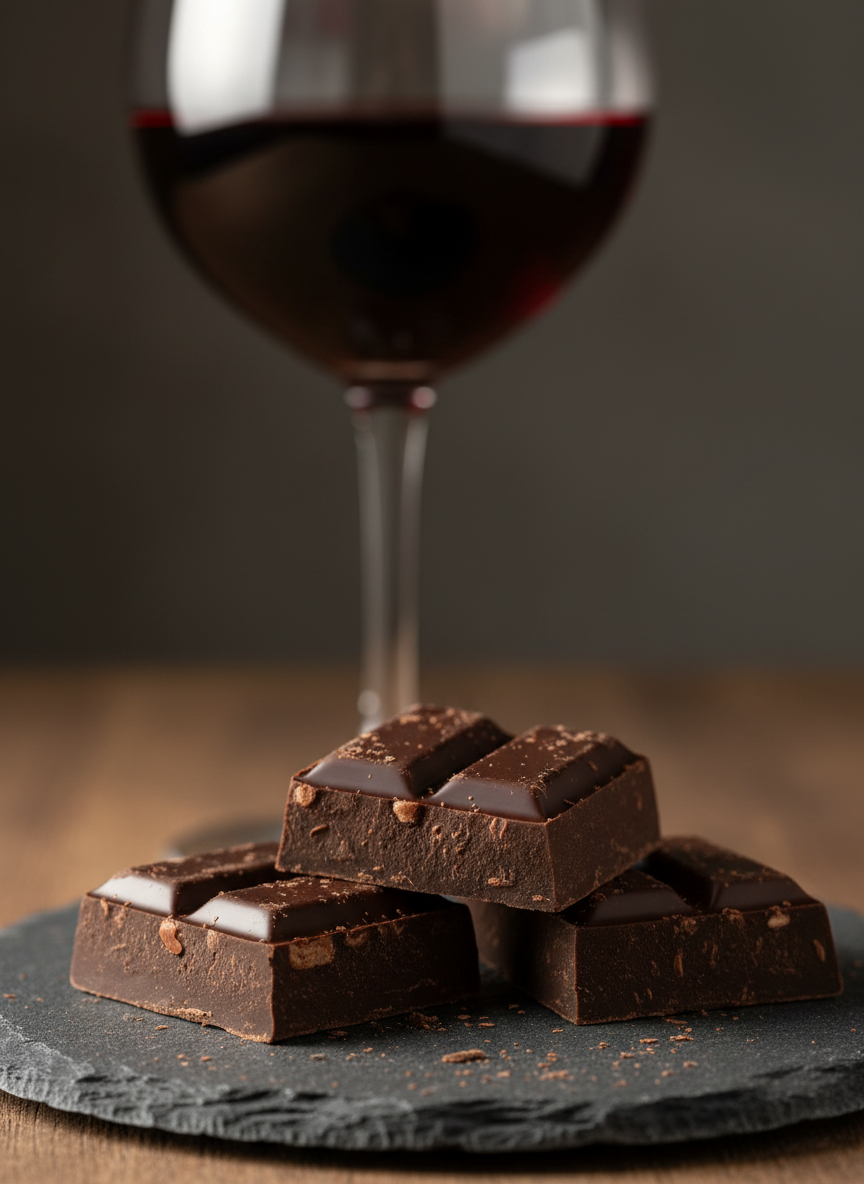 의외의 조합이라 생각하실 수 있지만, 쌉싸름한 레드 와인과 다크 초콜릿은 '항산화 끝판왕' 조합입니다. 초콜릿의 폴리페놀이 와인과 시너지를 내어 심혈관 건강을 돕죠. 단, 밀크 초콜릿은 설탕이 많으니 반드시 카카오 함량이 높은 것을 고르세요!