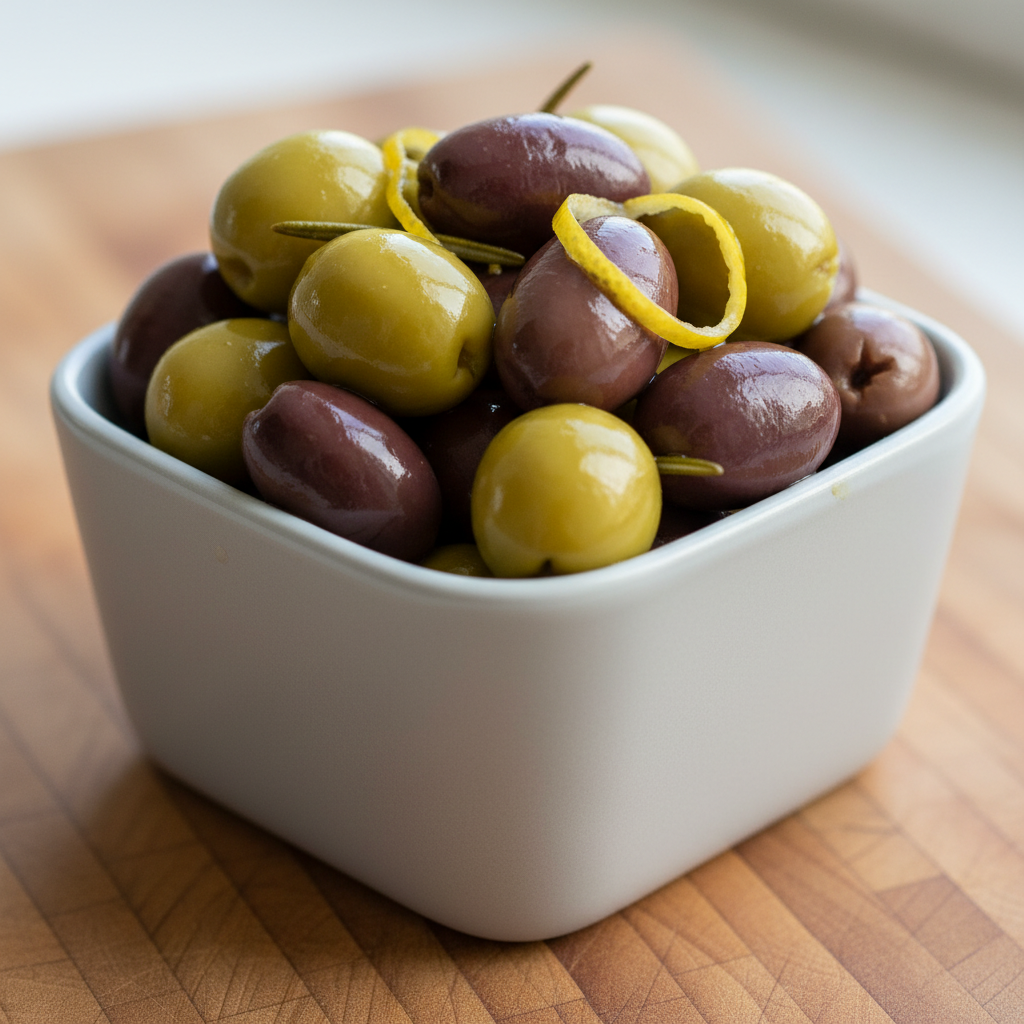 지중해 식단의 핵심인 올리브는 저칼로리이면서 풍부한 폴리페놀을 함유하고 있습니다. 특유의 짭조름한 풍미가 와인의 타닌감을 중화시켜 주는데요. 시중에 파는 통조림 올리브는 짤 수 있으니 물에 한 번 헹궈서 드시면 훨씬 담백하고 건강하게 즐기실 수 있습니다.