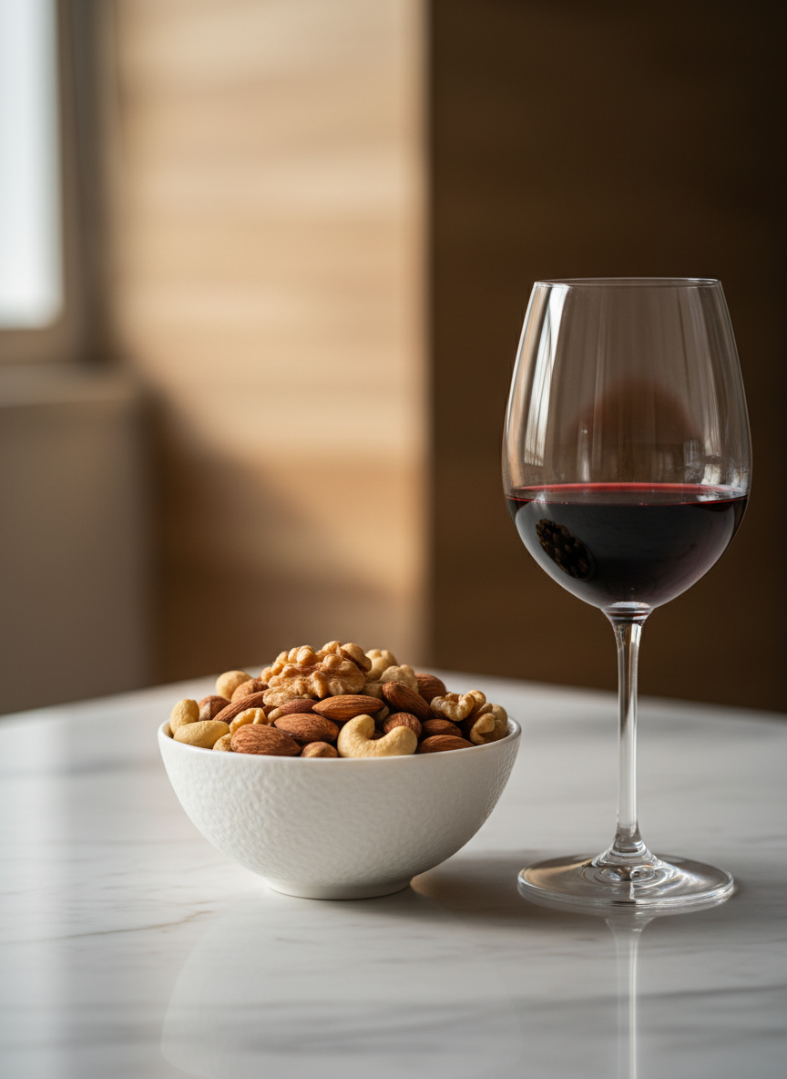 와인에는 강력한 항산화 성분인 '레스베라트롤'이 들어있어 적당히 마시면 심혈관 건강에 좋다고 알려져 있죠. 하지만 안주 선택이 잘못되면 이런 장점들이 상쇄될 수 있습니다. 특히 짠 안주는 갈증을 유발해 와인을 더 빨리 마시게 하고, 고칼로리 안주는 알코올 분해를 늦춰 간에 무리를 줄 수 있어요. 혈당을 급격히 올리지 않으면서도 알코올의 흡수를 조절해 주는 안주를 선택하는 것이 핵심입니다.