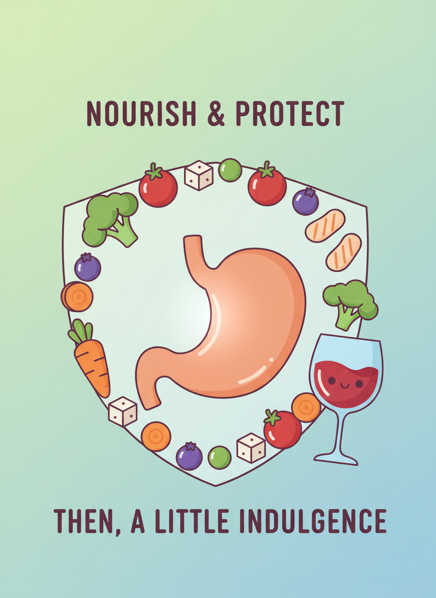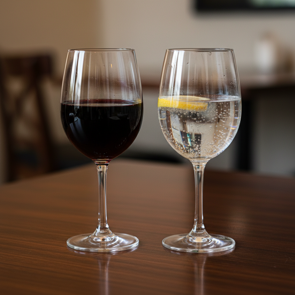 - 물 1:1 법칙: 와인 한 잔을 마실 때마다 물 한 잔을 꼭 챙겨 드세요. 알코올 농도를 희석하고 탈수를 막아줍니다.