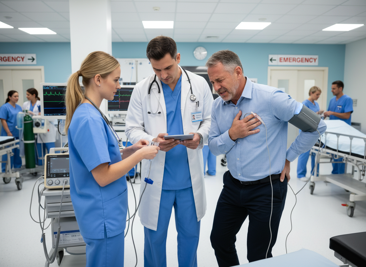 | 심혈관 질환 | 가슴 통증과 함께 등, 팔, 턱 등으로 방사되는 압박감 | 호흡 곤란, 식은땀, 어지럼증 |