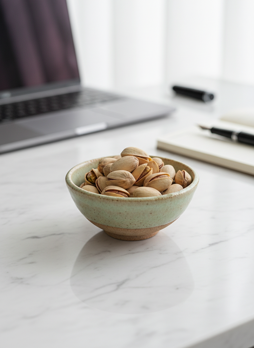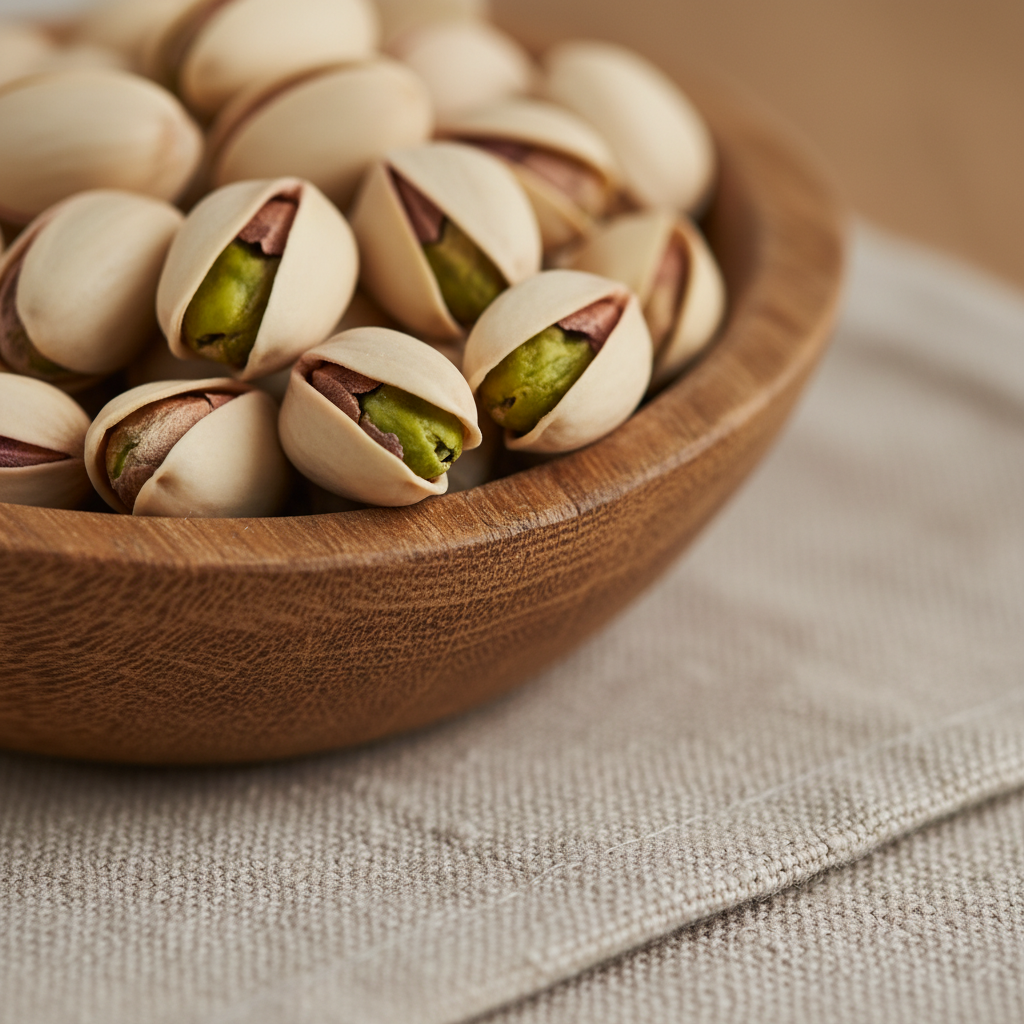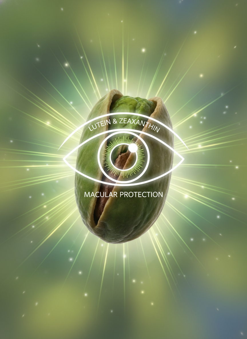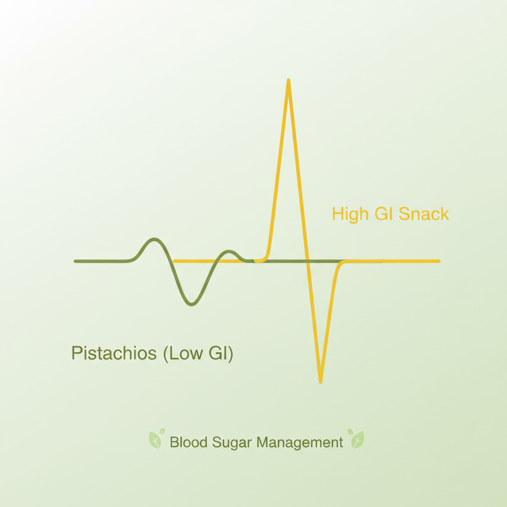 피스타치오는 혈당 지수(GI)가 매우 낮습니다. 탄수화물이 풍부한 음식과 함께 먹으면 혈당이 급격히 오르는 것을 막아주는 효과가 있죠. 또한 견과류 중 드물게 눈 건강에 필수적인 루테인과 제아잔틴이 풍부하여 황반 변성이나 백내장 예방에도 긍정적인 영향을 미칩니다.