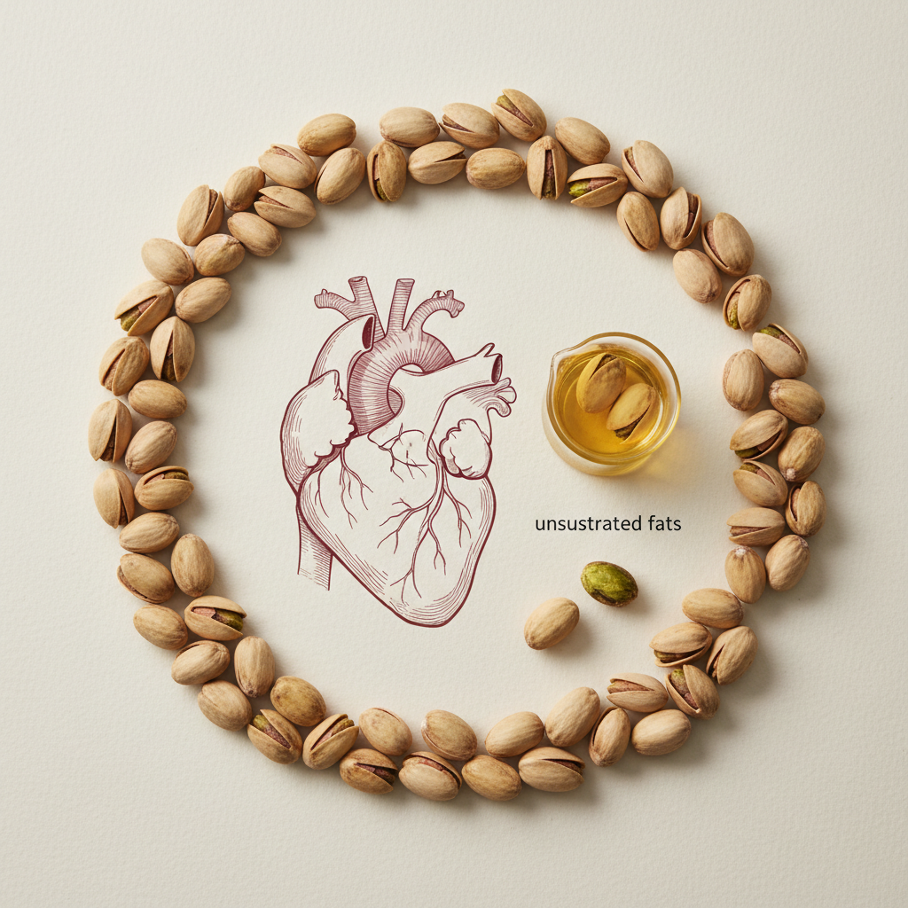 피스타치오에는 심장 건강에 유익한 불포화 지방산이 풍부합니다. 정기적으로 섭취하면 나쁜 콜레스테롤(LDL) 수치를 낮추고 좋은 콜레스테롤(HDL) 수치를 유지하는 데 큰 도움을 줍니다. 또한 칼륨 함량이 높아 나트륨 배출을 돕고 혈압을 안정시키는 효과도 탁월해요.