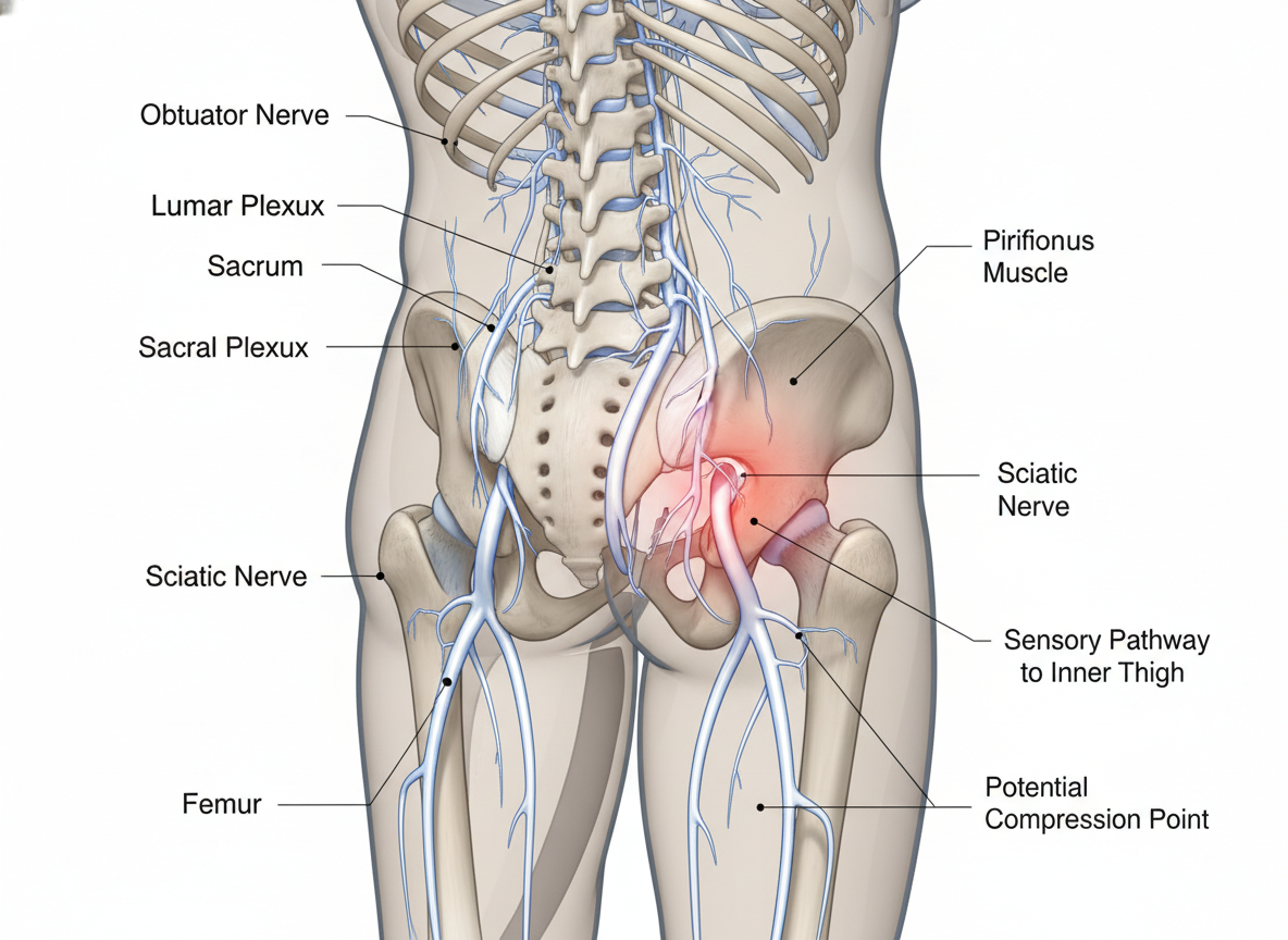 드물지만, 신경 압박이나 다른 질환 때문에 통증이 생기기도 합니다. 허리 디스크나 좌골신경통으로 허벅지 안쪽이 저리거나 아플 수 있구요. 탈장이나 요로결석 같은 내과적인 문제도 연관통으로 나타나기도 해요. 이런 경우는 혼자 판단하기 어려우니, 통증이 심하거나 다른 이상 증상이 있다면 꼭 전문가의 진단을 받아보셔야 합니다.