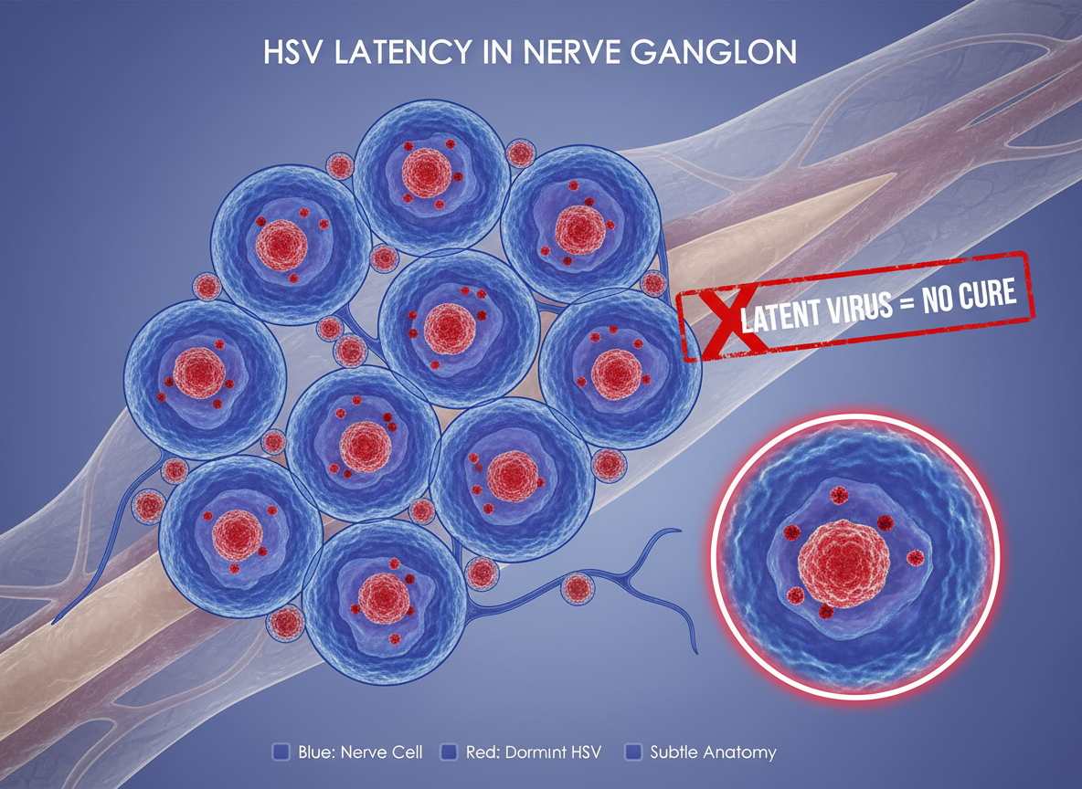 헤르페스 바이러스는 한번 감염되면 신경절에 잠복하여 평생 우리 몸에 머무는 특징을 가지고 있어요. 그래서 많은 분들이 완치가 어렵다고 알고 계시죠. 크게 두 가지 종류로 나눌 수 있는데, 바로 1형과 2형입니다.