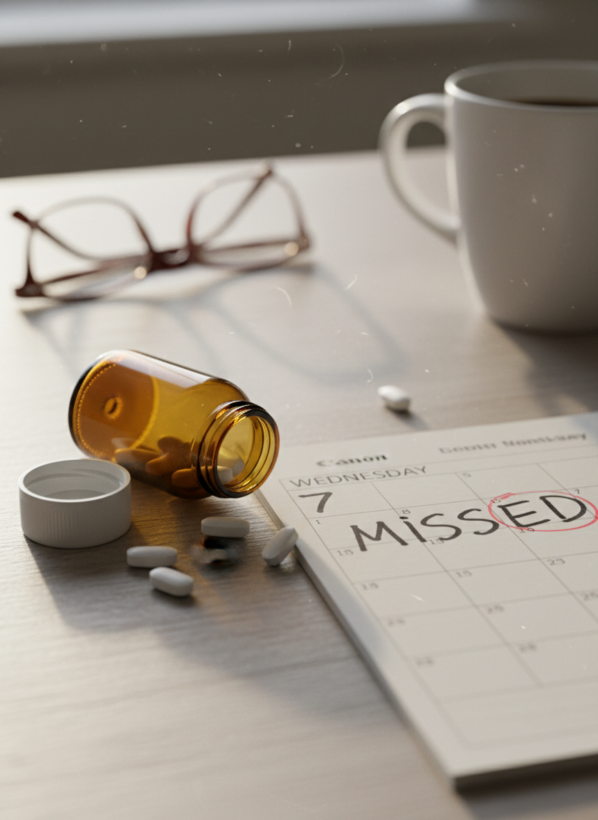 따라서 아침에 약을 복용하는 것은, 곧 닥쳐올 '오전 혈압 폭풍'에 대비해 미리 튼튼한 댐을 세우는 것과 같습니다. 게다가 인간은 망각의 동물입니다. 하루 일과가 바빠지는 오후나 저녁보다는, 아침 기상 직후라는 고정된 루틴에 약 복용을 끼워 넣는 것이 복약 순응도(약 잘 챙겨 먹는 비율)를 높이는 가장 현실적인 방법이기도 합니다. 약을 빼먹어서 생기는 리스크가 시간대 선택의 이점보다 훨씬 크기 때문입니다.