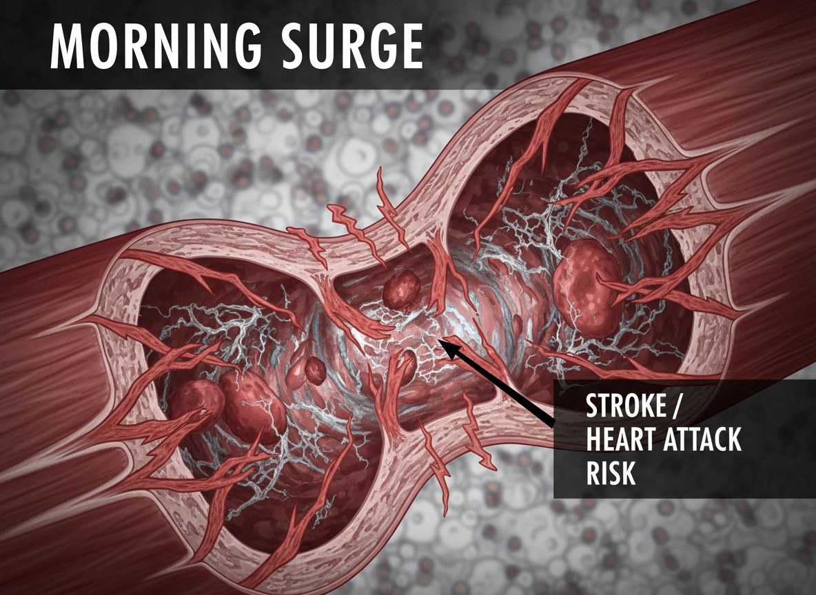 대부분의 의사 선생님들이 아침 식후 30분, 혹은 기상 직후 복용을 권장하는 데에는 타당한 이유가 있습니다. 우리 몸의 교감신경은 아침에 눈을 뜰 때 가장 활발해집니다. 이때 혈관을 수축시키는 호르몬들이 쏟아져 나오면서 혈압이 급상승하게 되는데, 이를 의학적으로 '모닝 서지'라고 부릅니다. 뇌졸중이나 심근경색 같은 무서운 심혈관 사고가 오전 9시에서 10시 사이에 가장 빈번하게 발생하는 이유도 바로 이 때문입니다.