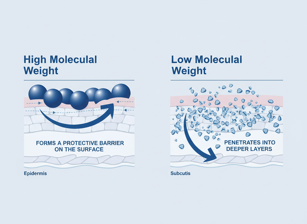 - 1. 분자 크기 확인: 속 건조엔 흡수가 빠른 '저분자', 표면 보습막엔 '고분자'를 선택하세요.