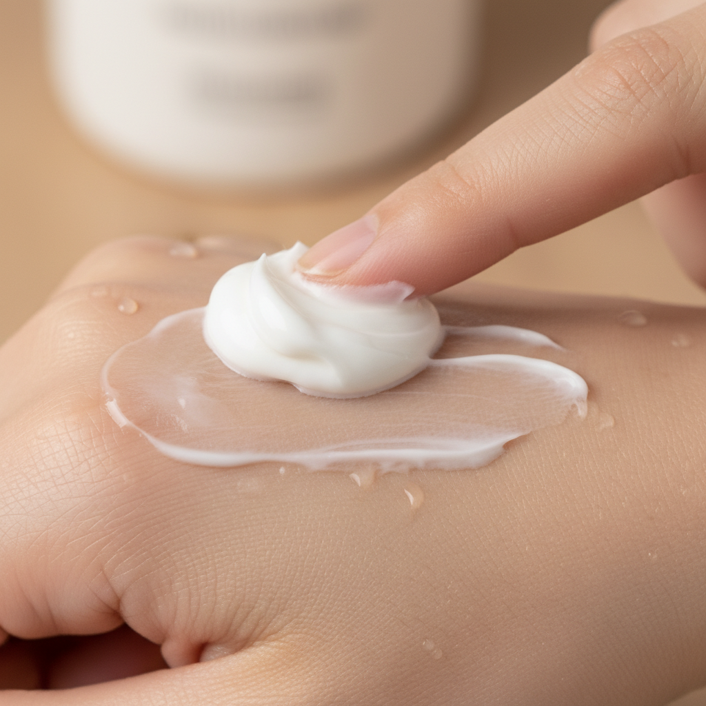 - 3. 밀폐 보습 필수: 히알루론산 단독 사용보다는 크림(세라마이드 등)으로 덮어 수분 증발을 막으세요.